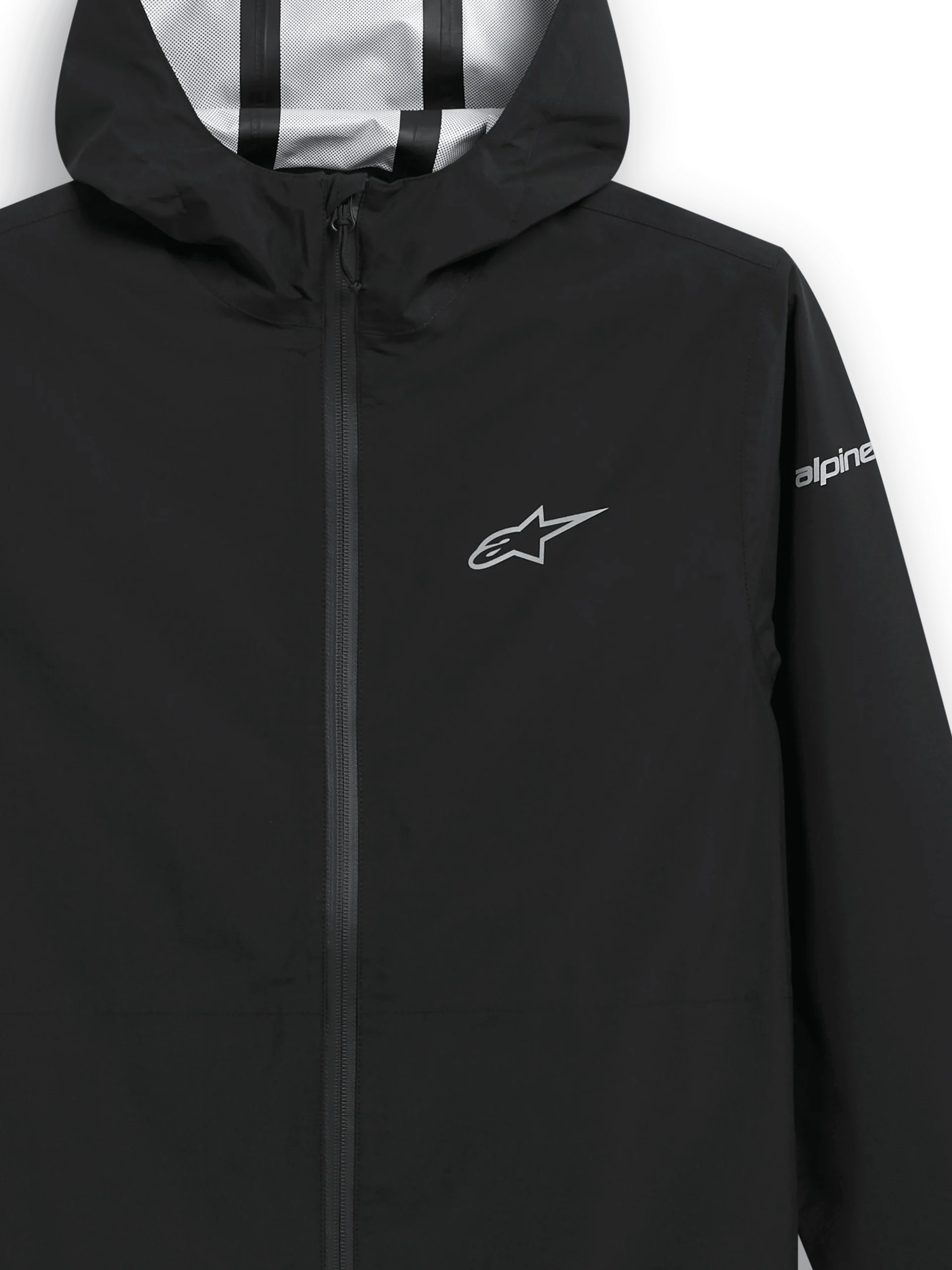 • Vaste capuchon, voorgevormde armen, gecoate omgekeerde spiraalrits aan de voorkant, ritszakken voor de handen