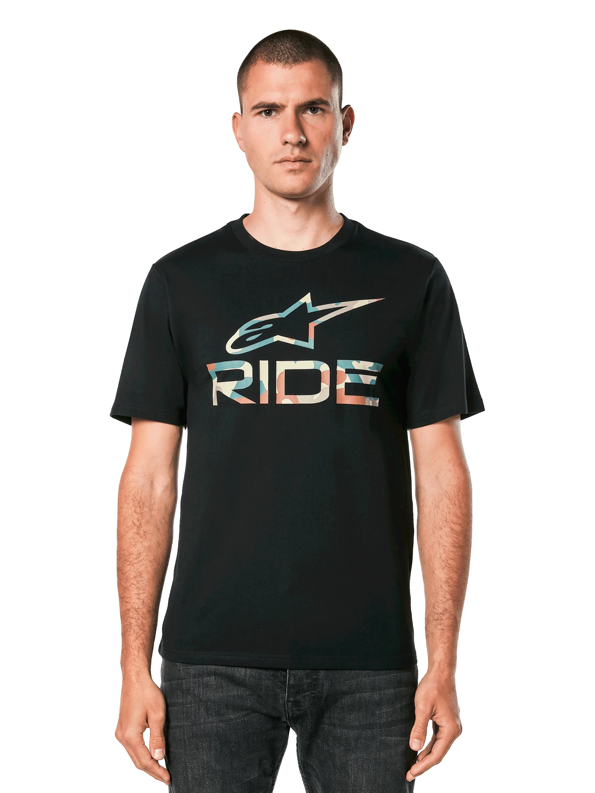 • Gedrukte Cut and Sew Fit Tee• Voorzijde camo vulling Ride 4.0 logo.• Zachte handafdruk• Interne nekafdruk, externe labeling.