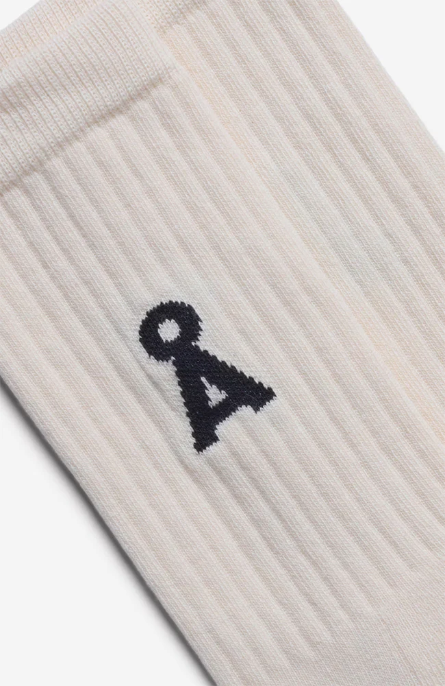 Mooie off-white sportsokken van ARMEDANGELS met een zwarte A aan de zijkant. De sokken zijn gemaakt van duurzaam biologisch katoen.