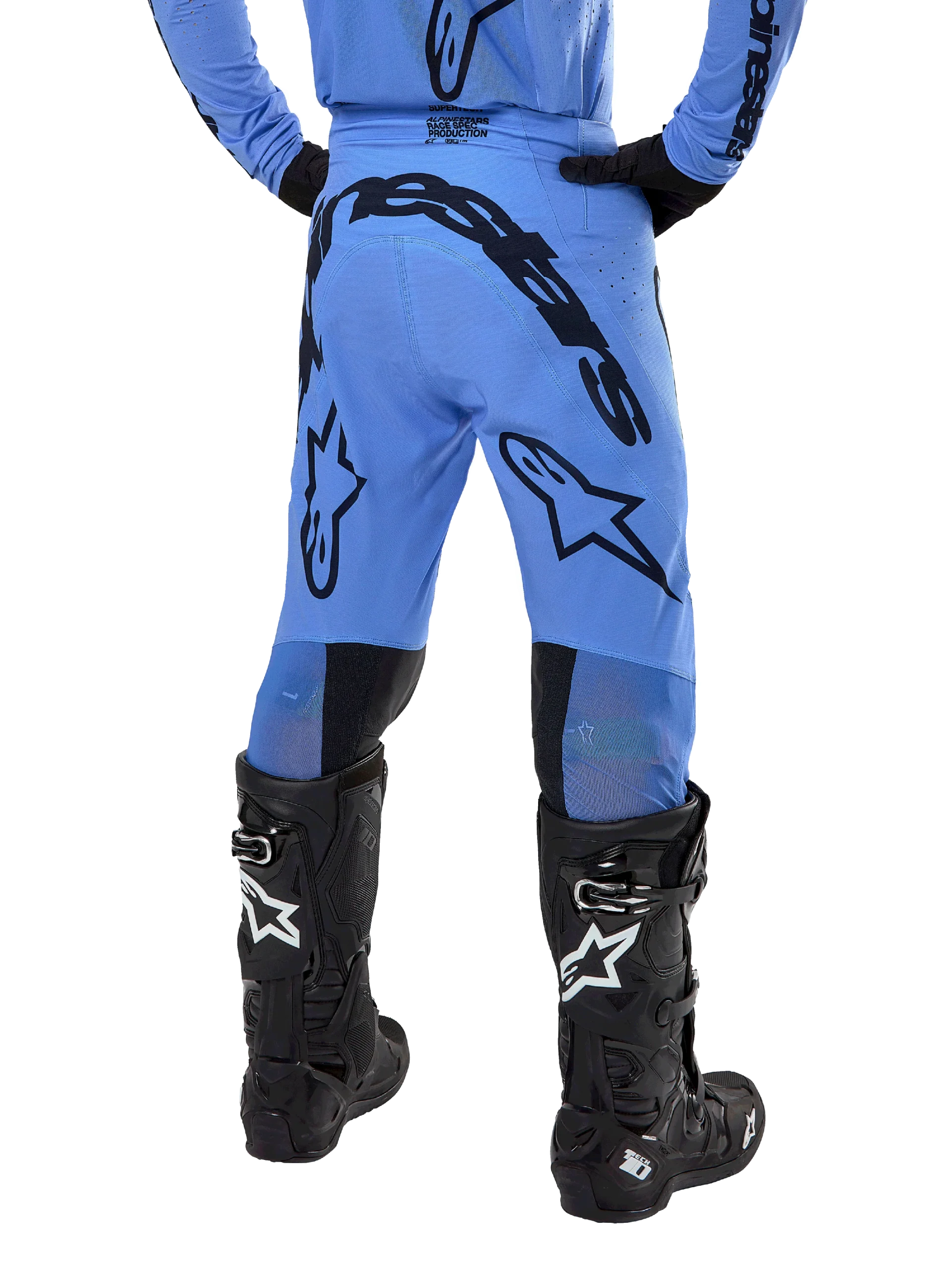Supertech is de innovatieve Pro Level Motocross kledinglijn van Alpinestars, ontworpen voor superieure prestaties op vuil terrein, de Supertech uitrusting past als een tweede huid. Met een ontworpen design voor een premium atletische racepasvorm, is het chassis gemaakt van geavanceerde stretch en duurzaam stretch ripstop, wat zorgt voor een ultralichte constructie. De Supertech broeken bevatten een reeks van SX en MXGP race-bewezen technologieën, waaronder stretch Kevlar® om optimale niveaus van flexibiliteit, bewegingsvrijheid, ventilatie, duurzaamheid en comfort te leveren.