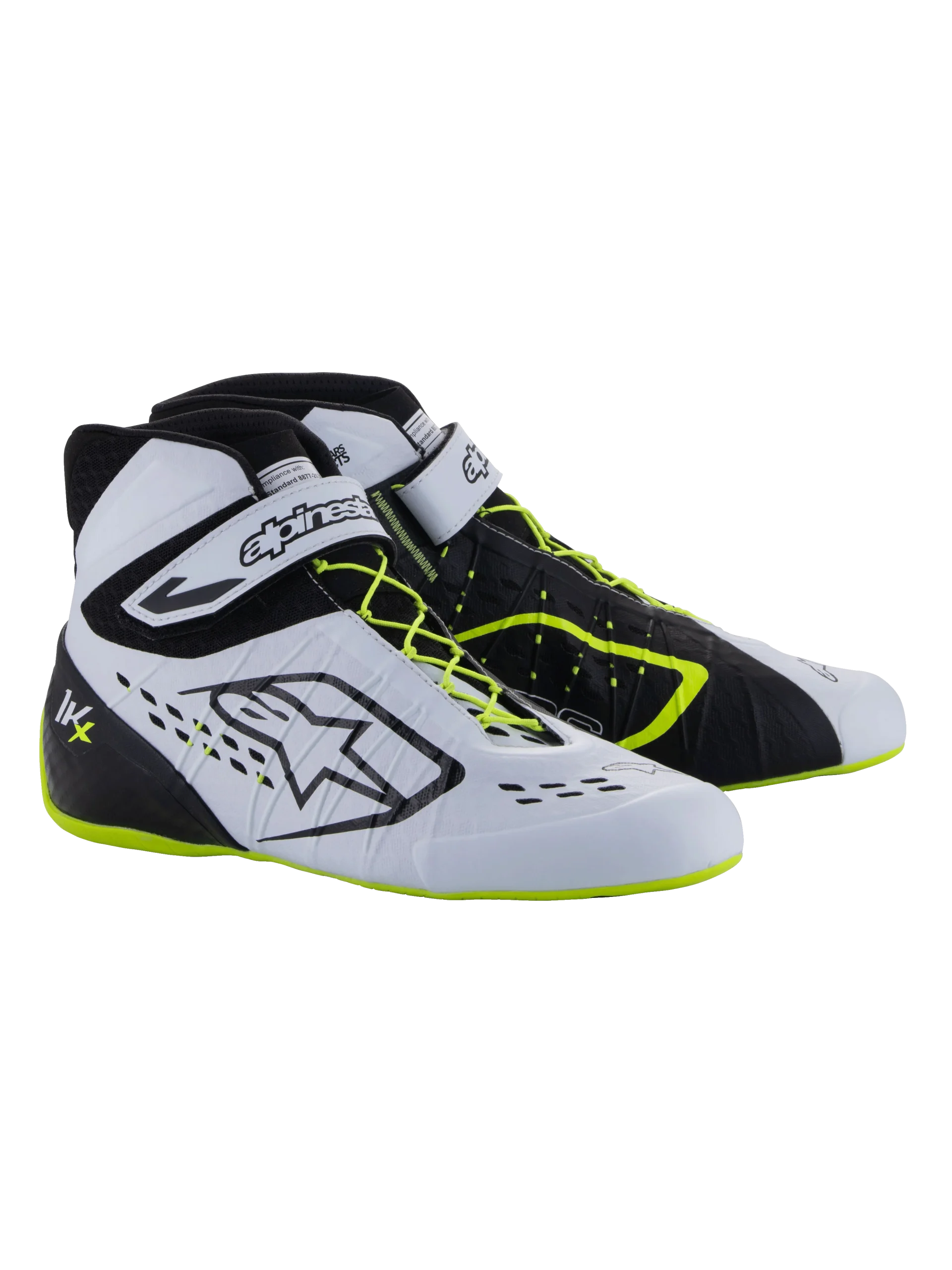 De TECH-1 KX V3 Schoen heeft een geavanceerde, naadloze thermo-gelaste constructie bestaande uit ultradunne PU-film en textiel om een uiterst lichtgewicht prestatie en uitstekend comfort en pasvorm te bieden. Laser gesneden luchtinlaten en perforaties op de teen en beide zijden voor extra ademend vermogen. Eerste schoenen gehomologeerd volgens de nieuwe FIA karting standaard. Met Formule 1-afgeleide kenmerken, samen met specifieke innovaties voor het kartcircuit, is de nieuwe Tech-1 KX V3 Schoen nu lichter en beter ademend met een herzien asymmetrisch vetersysteem dat nauwer aansluit op de voet. Het gebruik van dunne PU-film voegt duurzaamheid toe terwijl het de naadconstructie en drukpunten vermindert. Laser uitsnijdingen en perforaties in de film, gecombineerd met 3D-mesh, bieden maximale ademend vermogen.