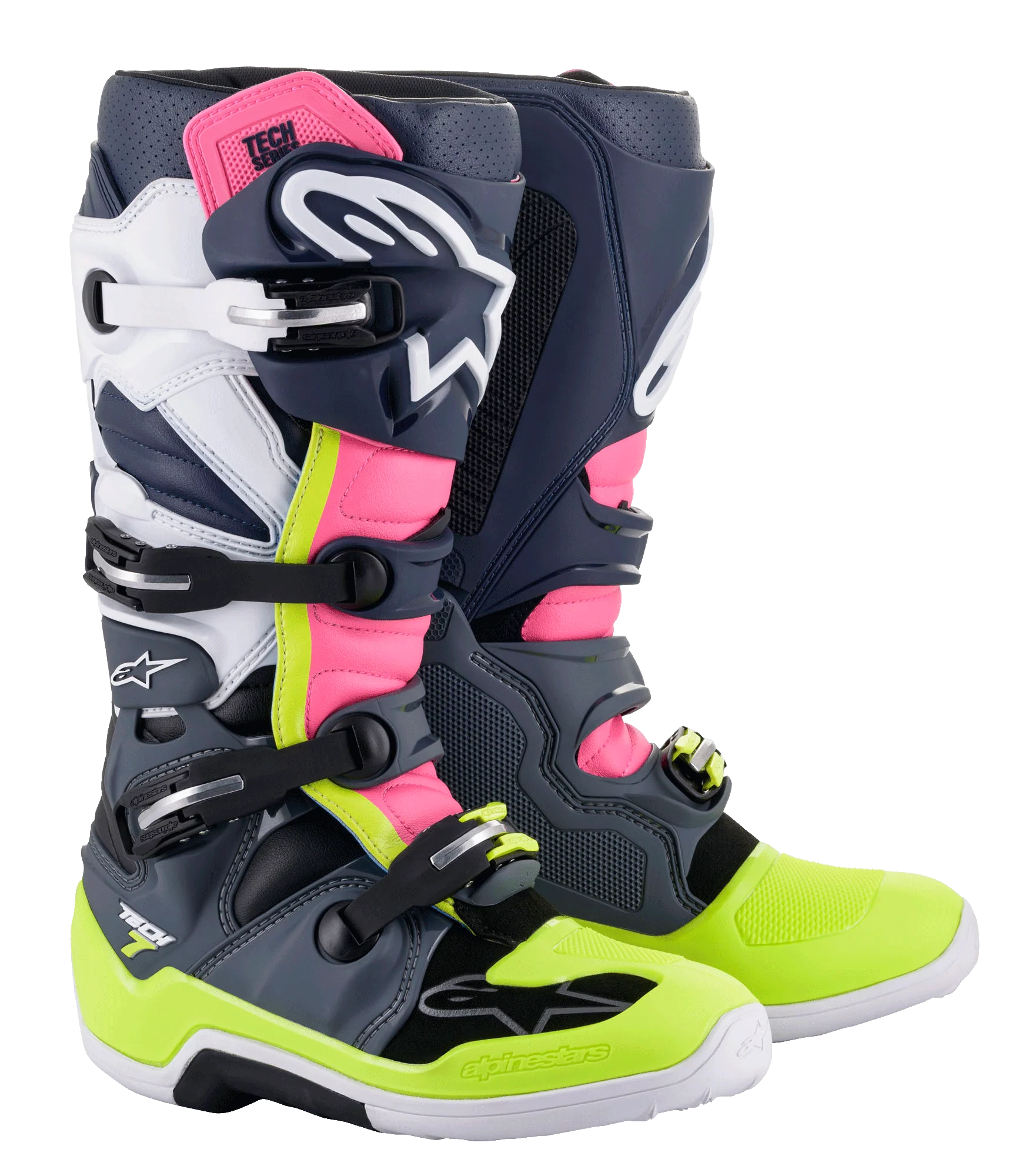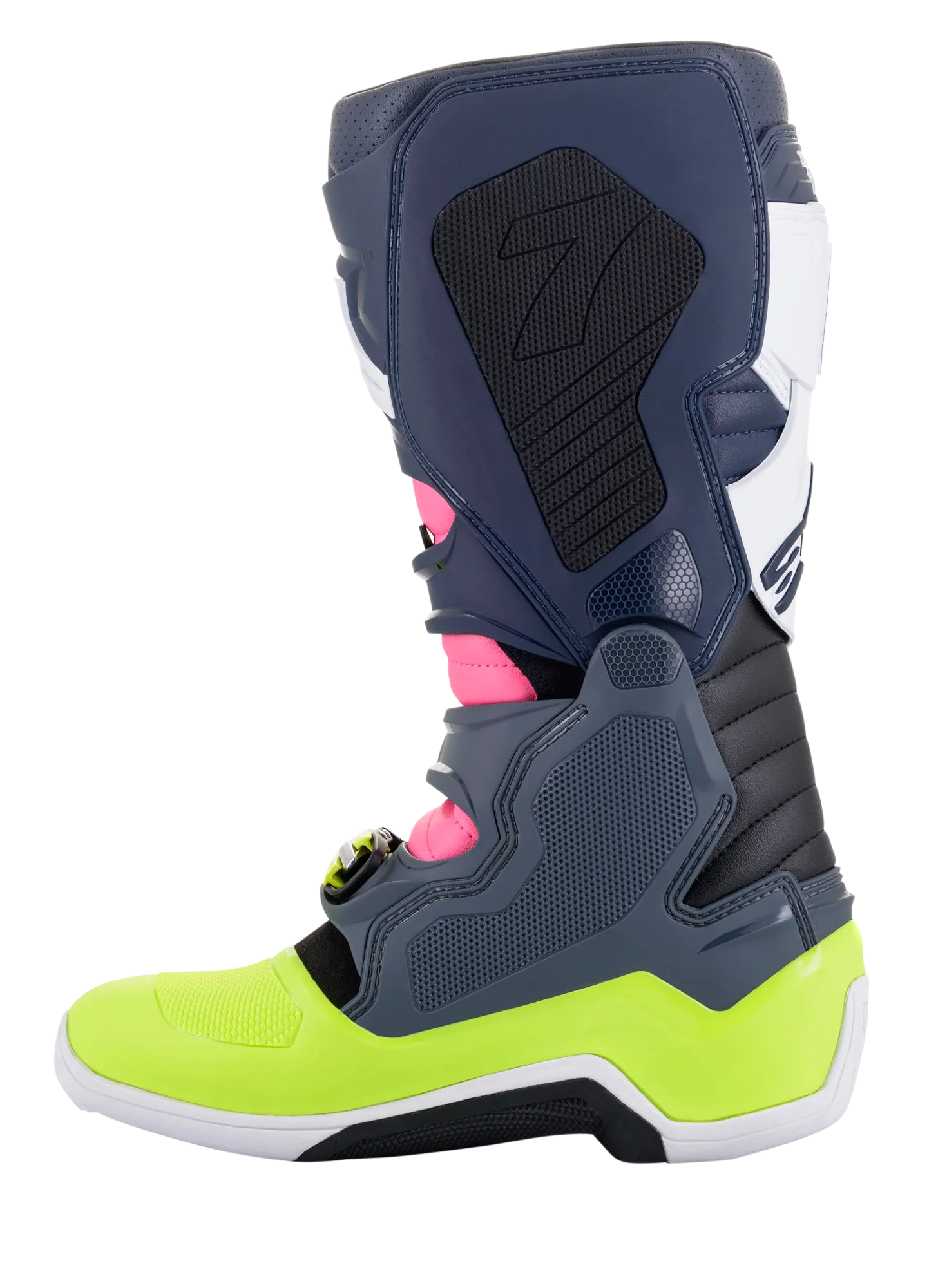 De gerevolutioneerde Tech 7 MX-laars integreert innovatieve materialen en technologie in een volledig nieuw ontwerp voor een lichtere, meer anatomisch geprofileerde performer. Deze CE-gecertificeerde laars bevordert kernstabiliteit en flexibiliteit via een biomechanisch scharnier, terwijl het uitstekende enkelbescherming biedt. Het laarzenchassis is ontworpen om volledig gevoel en geoptimaliseerde interactie met de motorbediening te geven, terwijl het innovatieve gespsysteem eenvoudige, precieze sluiting mogelijk maakt.