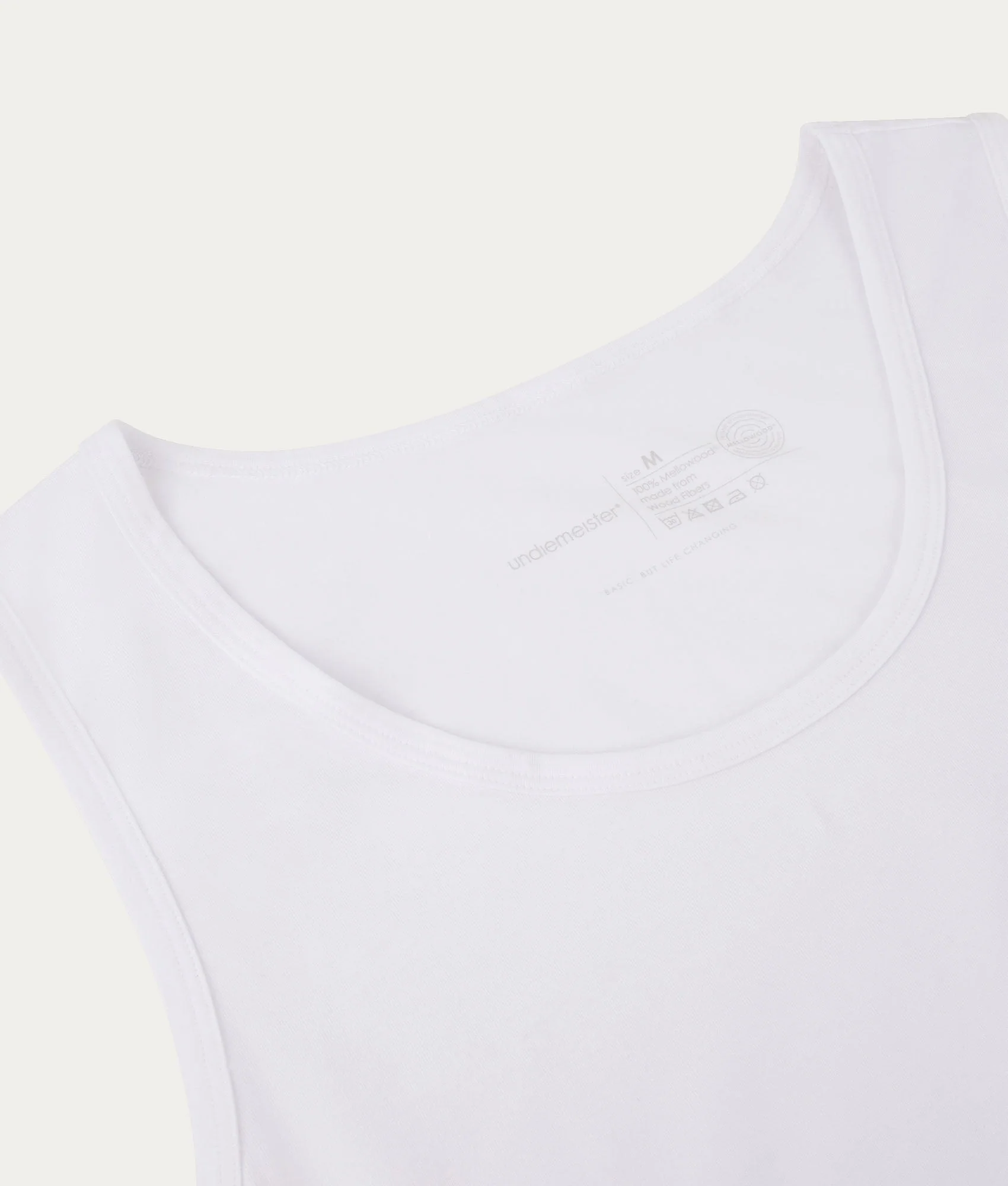 Bij Undiemeister geloven we niet in fast fashion. Elk product dat we maken moet bijdragen aan een wereld met minder verspilling en meer kwaliteit. Daarom is de witte slim fit tanktop: